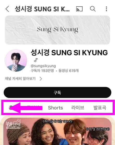 4. 성시경 사진이 있는 부분을 클릭하시면