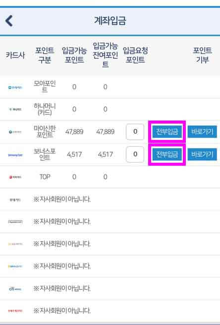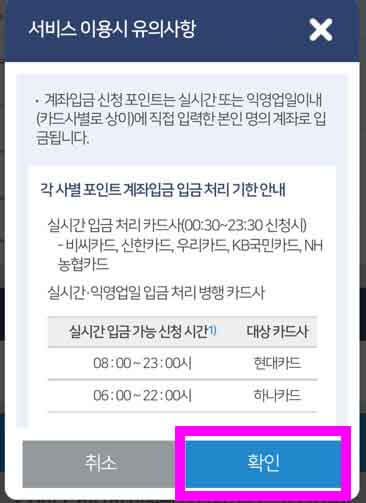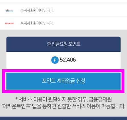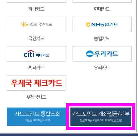 카드 포인트 계좌입금을 눌러주세요