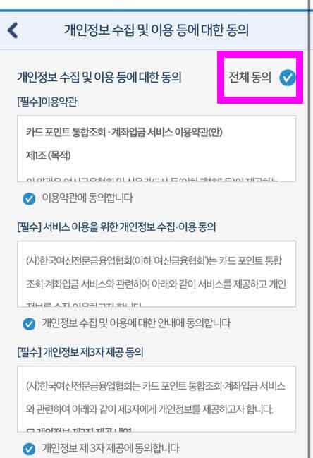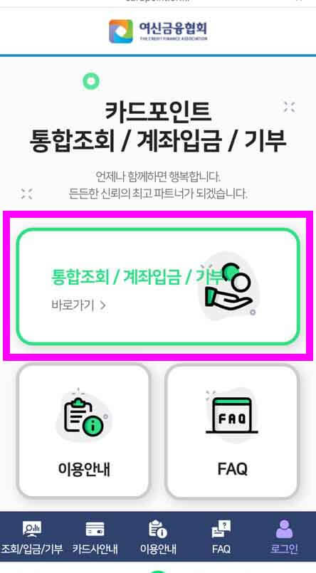 여신금융협회 카드포인트 통합조회 계좌입금