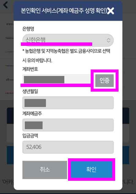 계좌를 인증하세요.