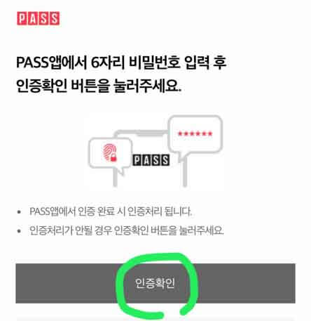6. PASS 어플로 자동 전환된 후