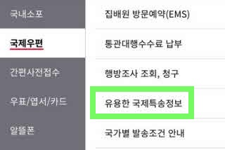 2. 국제우편 선택, 유용한 국제특송정보 선택