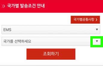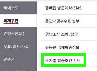 4. 국제우편 선택 후 국가별 발송조건 안내 선택