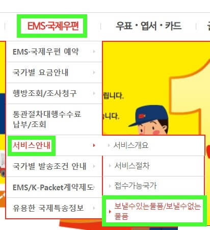 EMS-EMS서비스 안내-보낼수 있는 물품/보낼수 없는 물품