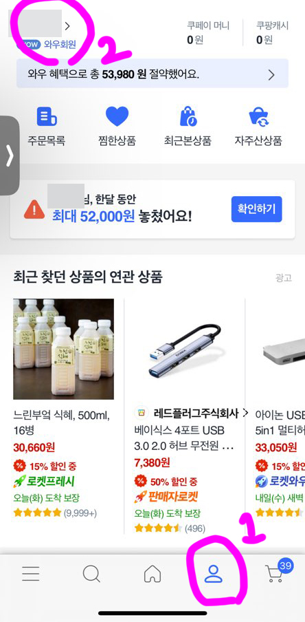 1. 쿠팡앱 맨 처음화면 아래 부분